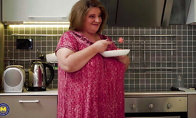 BBW MILF step-mom is pouring her hooter milk for hungry stepson