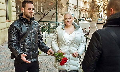 Chubby housewife fucks a stranger while cuckold spouse is w