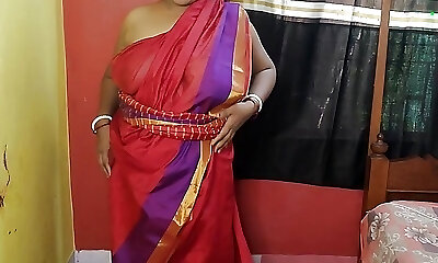 Indian sizzling mom showing her juicy cooter in red sharee