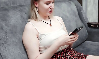 Fat Russian blonde with a hefty ass fucks a horny guy in front of the camera