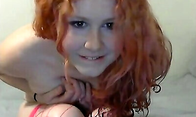 Nineteen year old busty webcam girl with innocent face touches her ginormous natural ti