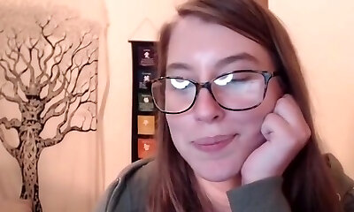 This frisky BBW coed with large juggs likes to masturbate with her glasses on