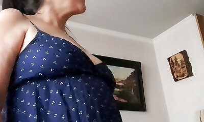 胖奶奶脱下她的缎子内裤和显示她的湿猫