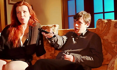 玛丽*奥尔森和维克多*帕尔马斯-成熟的女人站在她的屁股在空中和接收她的继子的手指和舌头