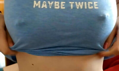 Big pierced nipple girl riding a dildo